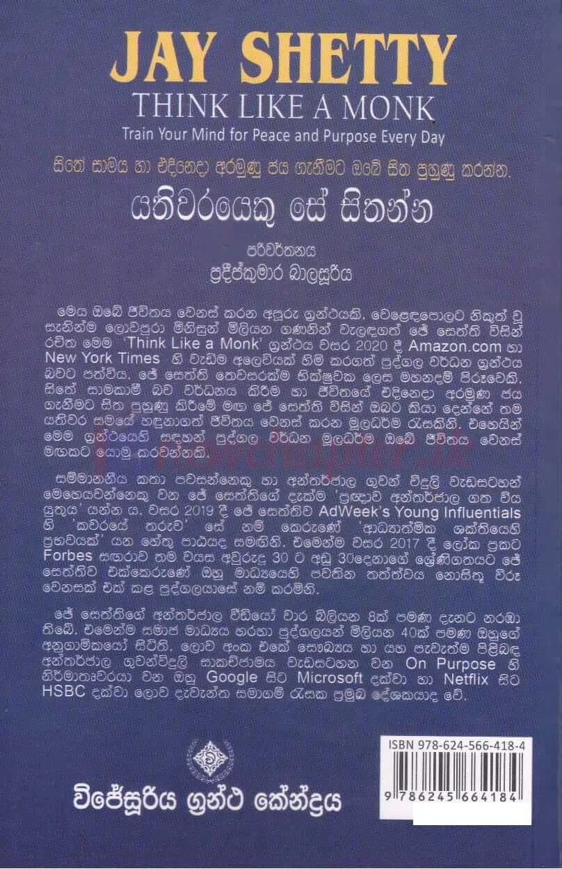 Tags: Jay Shetty, Pradeep Kumara Balasooriya - ප්රදීප් කුමාර බාලසූරිය, Psychology, Self-help, Translation, Wijesooriya Grantha Kendraya